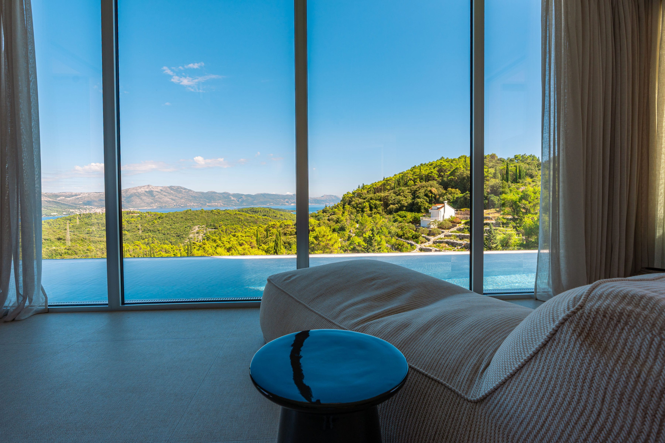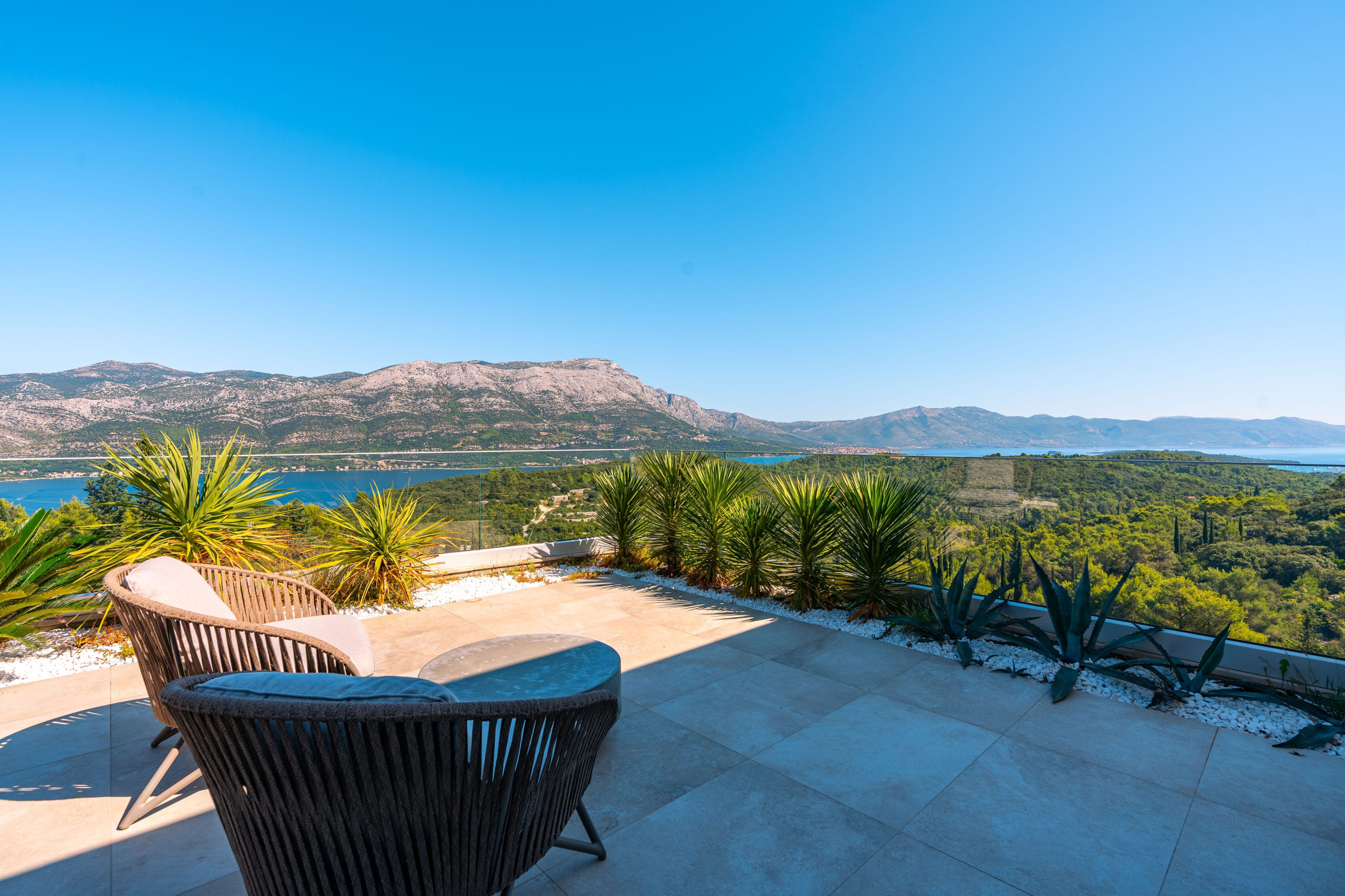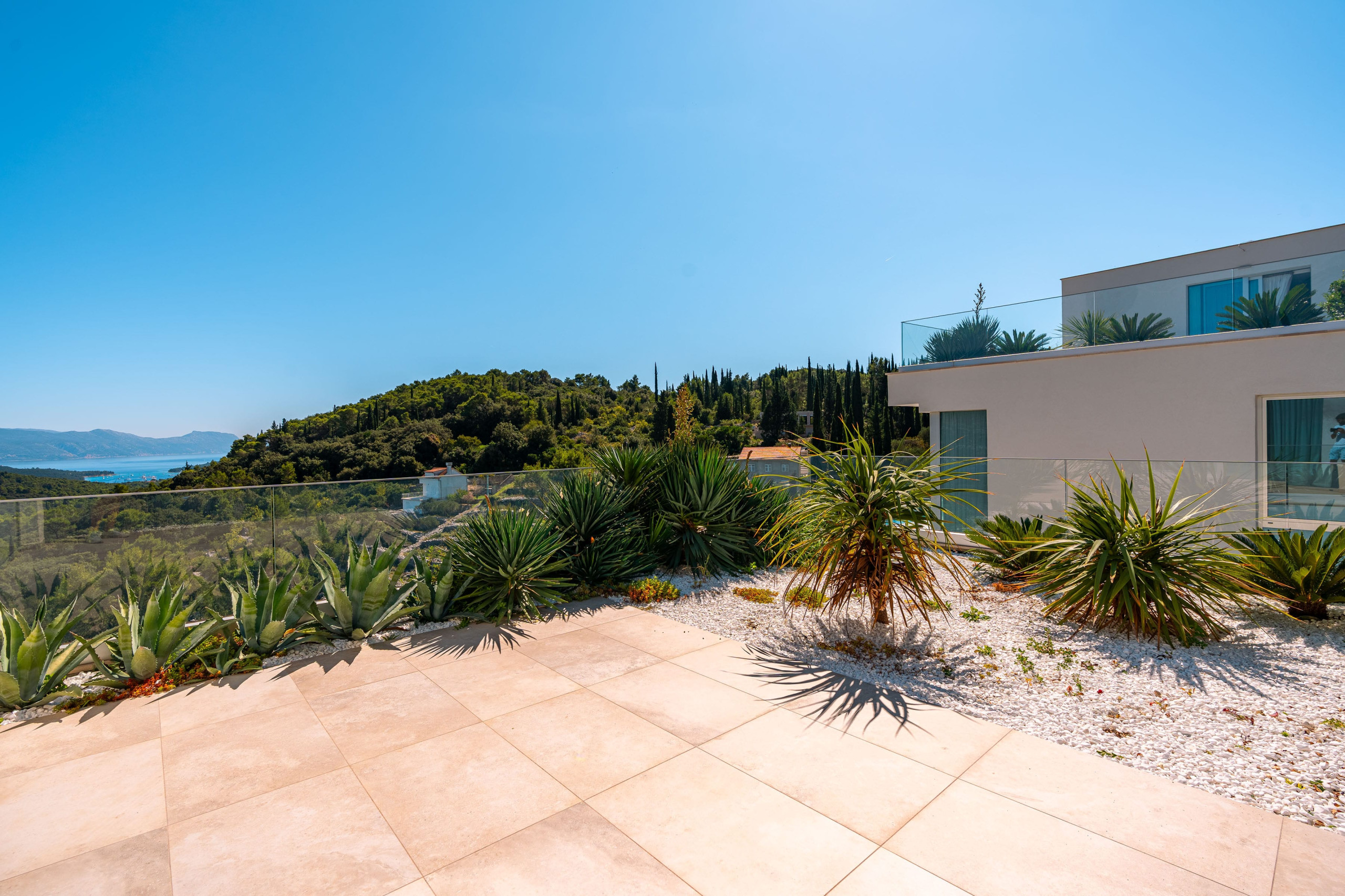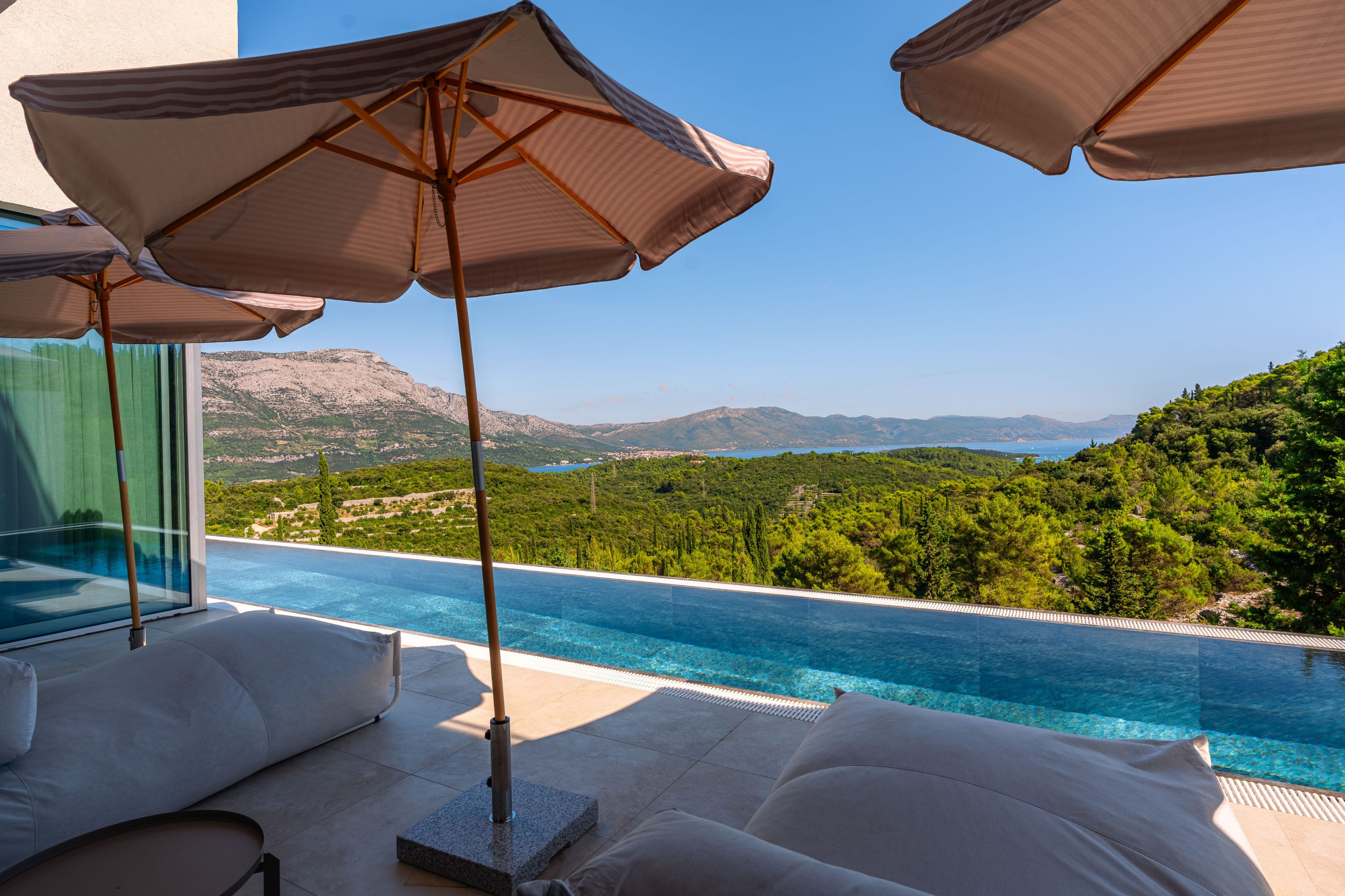 Thanks to Korčula’s mild Mediterranean climate, this villa is ideal for year-round luxury holidays. The northeast orientation ensures natural protection from intense sun, while large windows and terraces maximize the stunning panoramic views from almost every room.