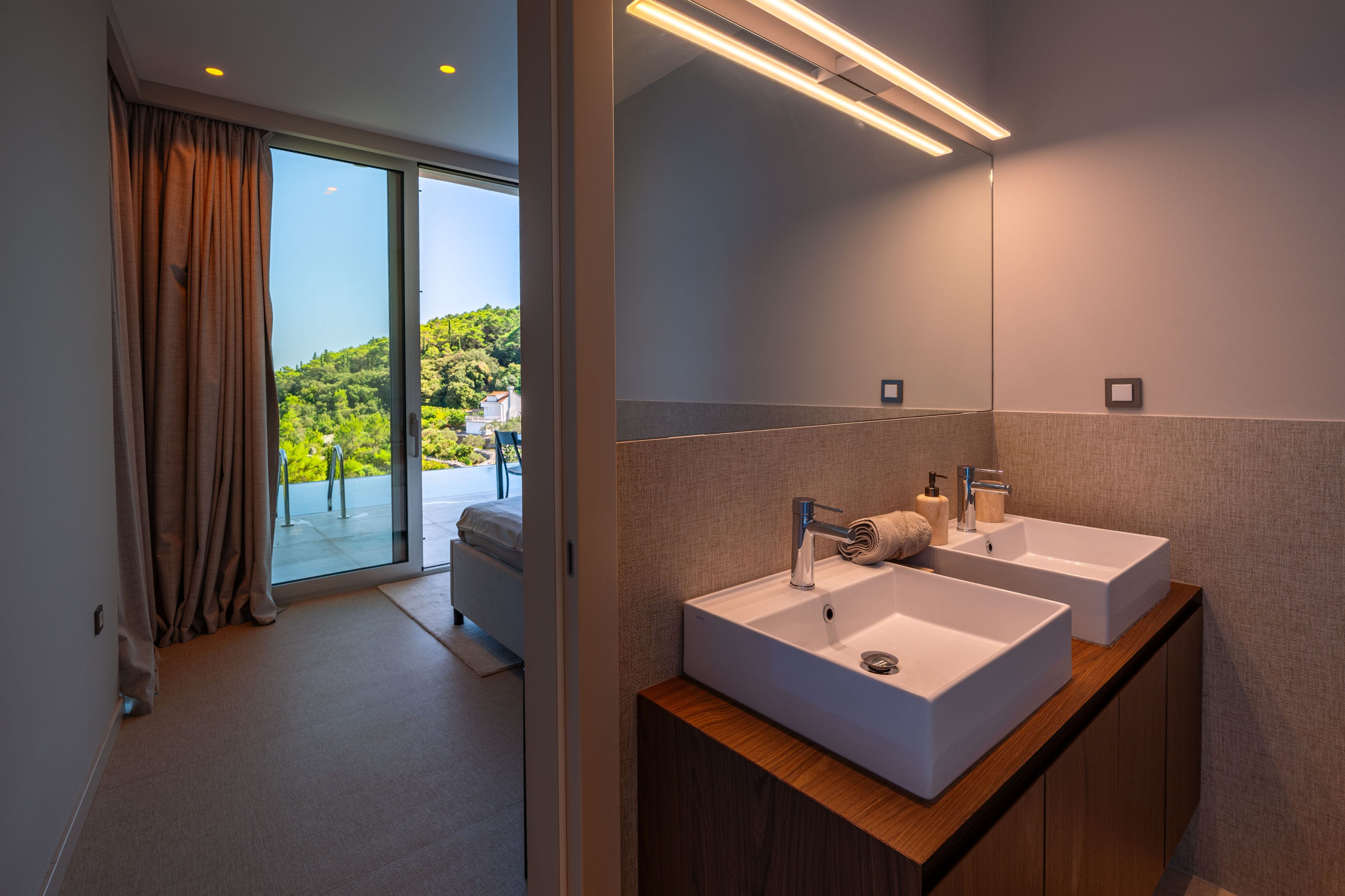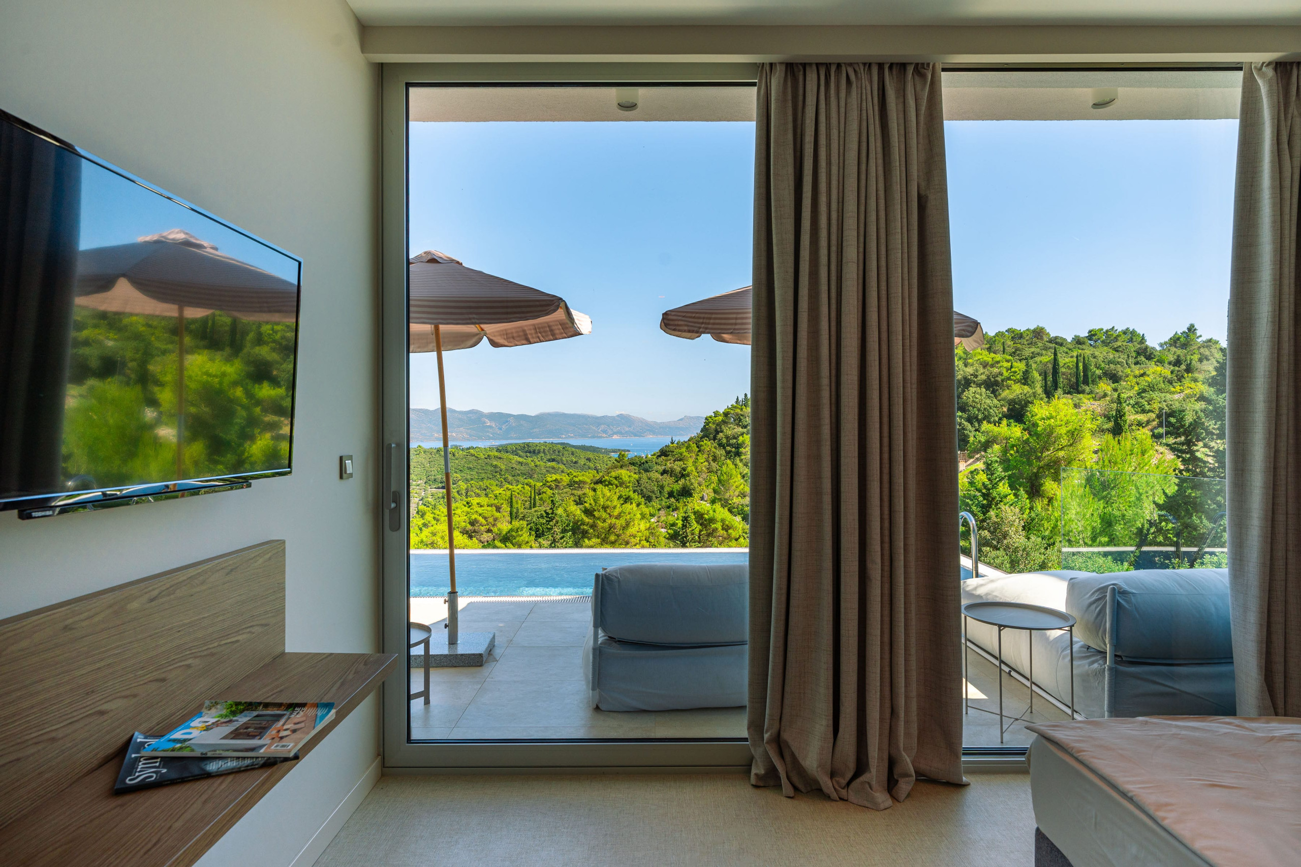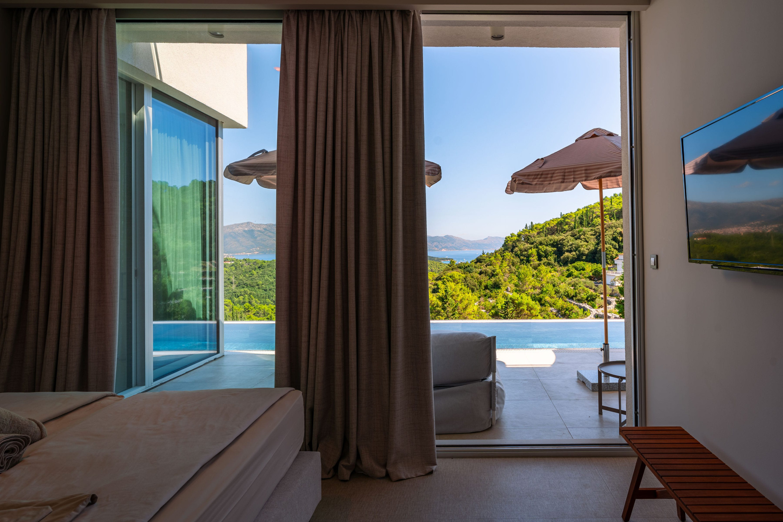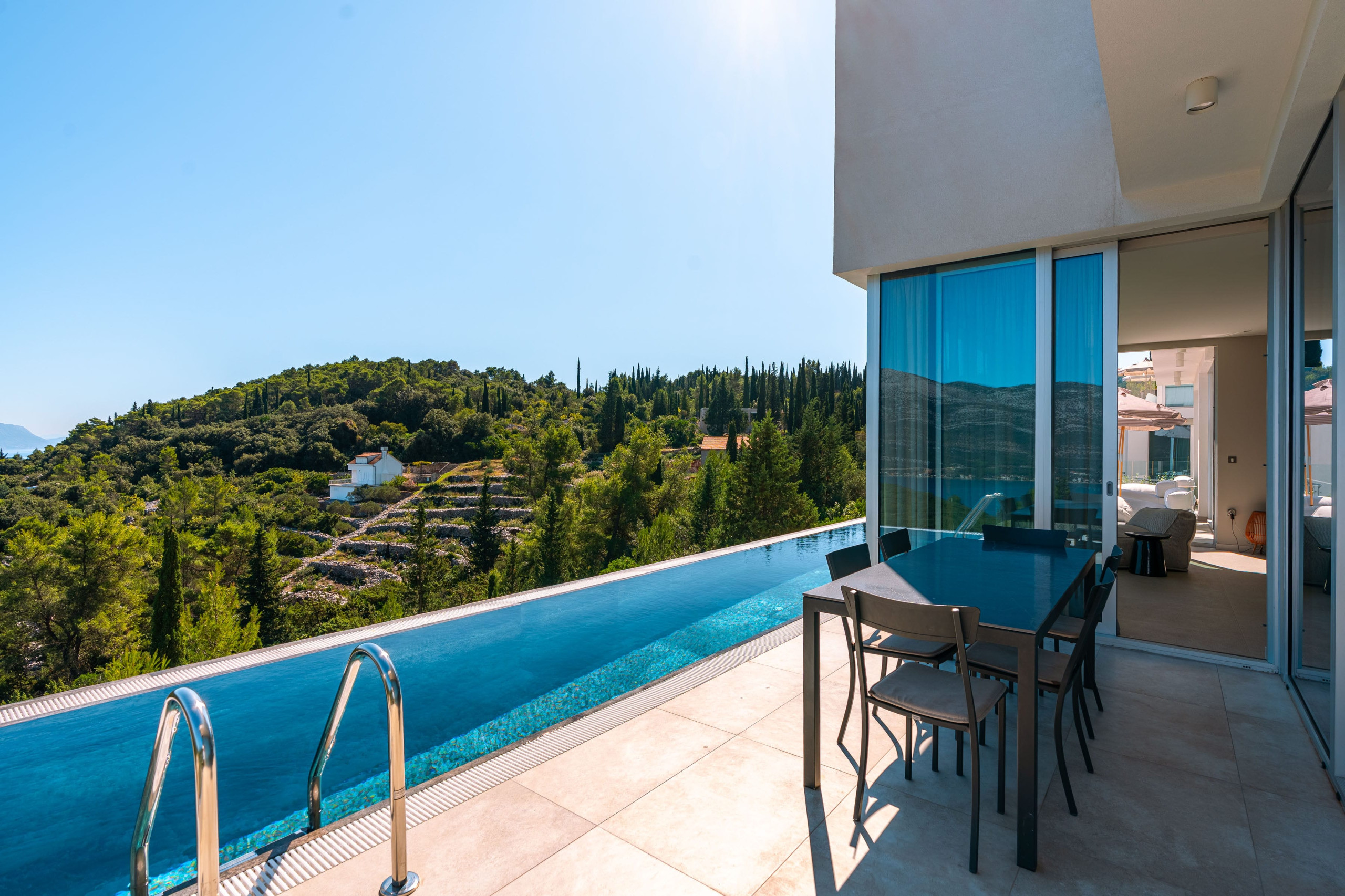 Thanks to Korčula’s mild Mediterranean climate, this villa is ideal for year-round luxury holidays. The northeast orientation ensures natural protection from intense sun, while large windows and terraces maximize the stunning panoramic views from almost every room.
