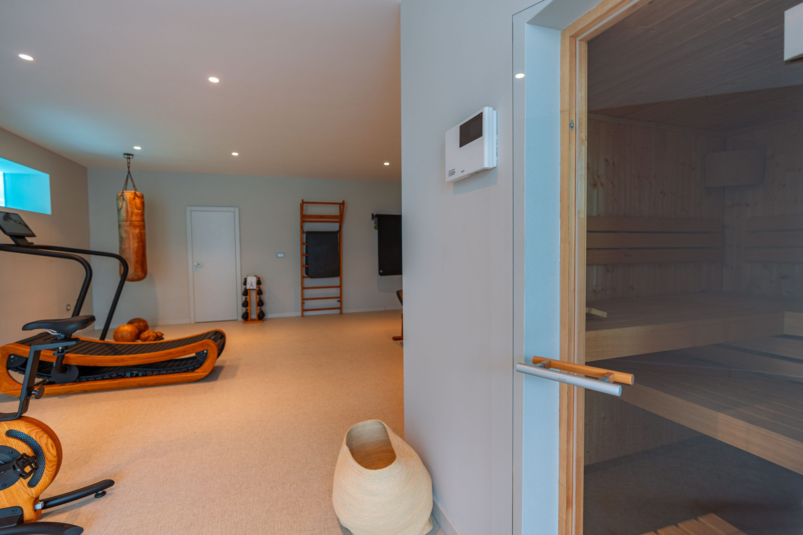In the lower ground floor, you will enjoy the private gym and wellness area featuring a Finnish sauna, bathroom, laundry, and utility room. A unique design element allows you to enjoy a view into the infinity pool directly from the wellness zone.