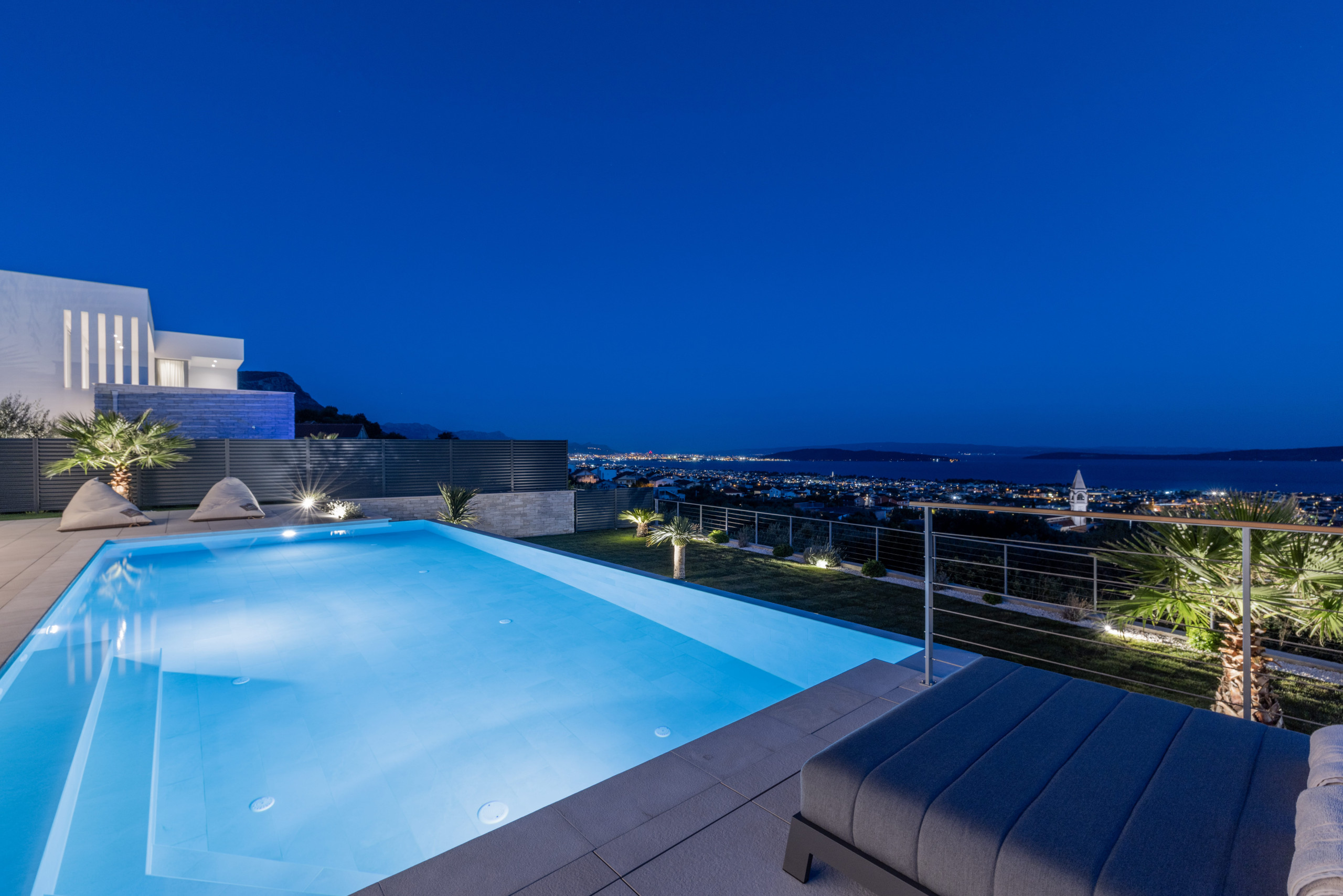 Experience the top Mediterranean escape at Villa Eternal Split, a modern luxury villa in Split, Croatia, designed for guests who expect only the best. Set on an elevated hillside in charming Kastel Stari, this exclusive villa in Croatia combines exceptional comfort, fantastic sea views, and a prime location, just 3 km from the beach and close to the airport. The old town of Split is a short drive from the villa, making this holiday home an ideal ground for unforgettable holidays in Croatia.