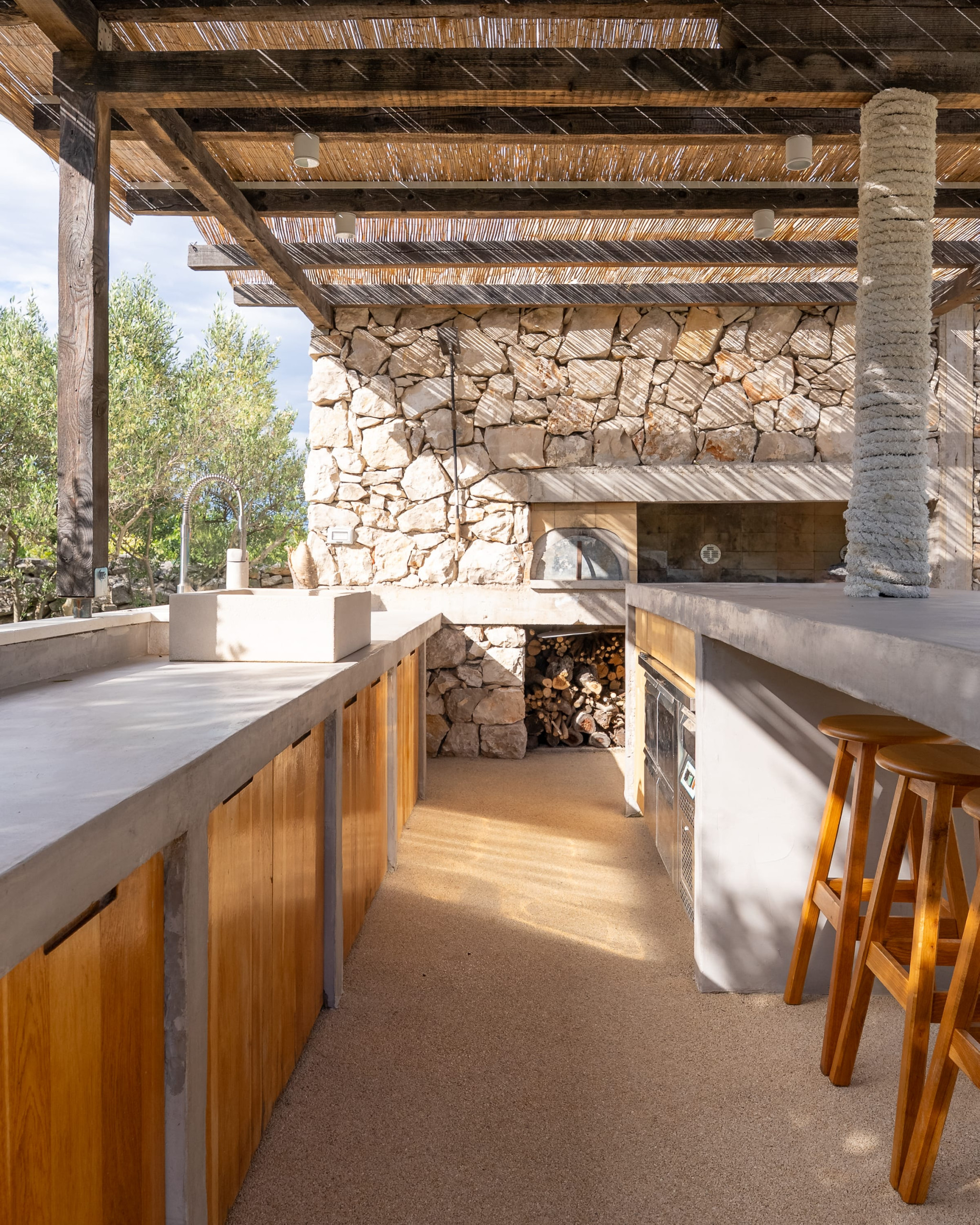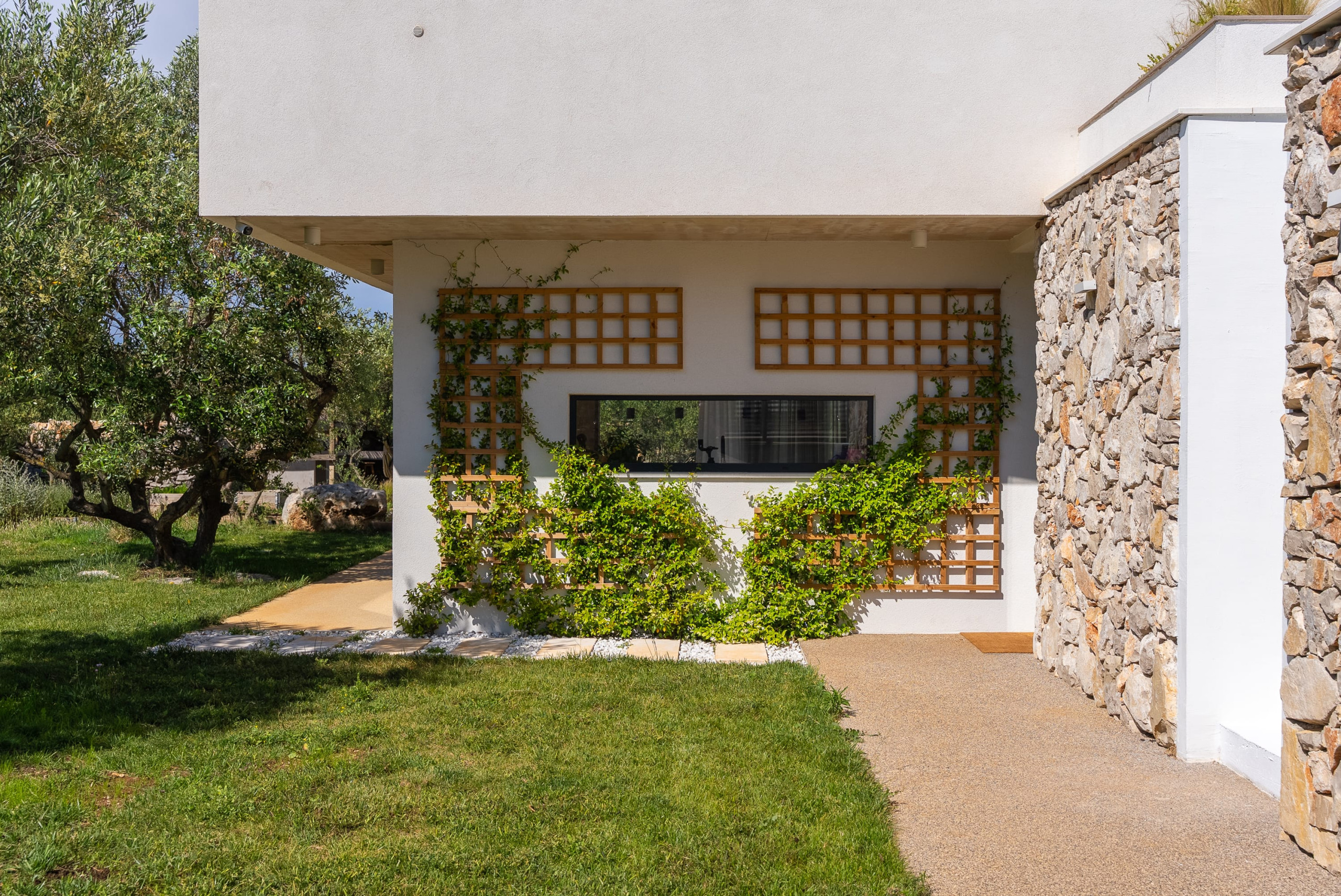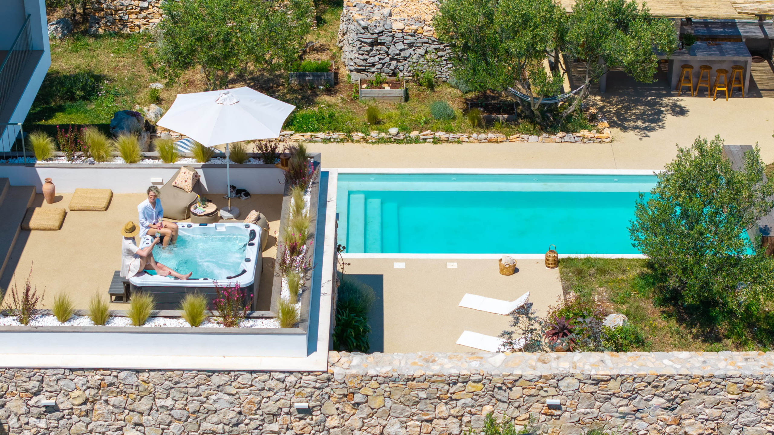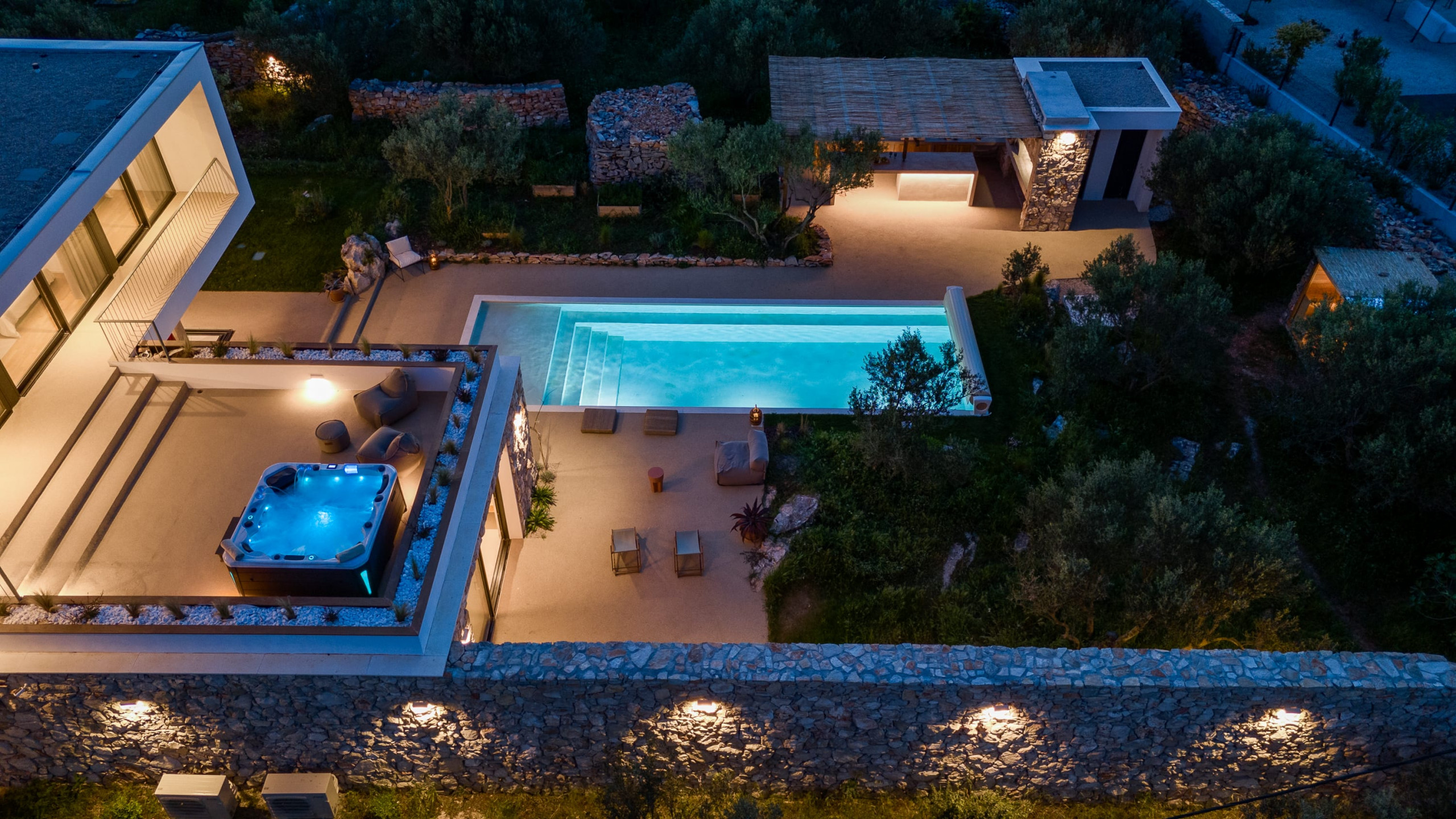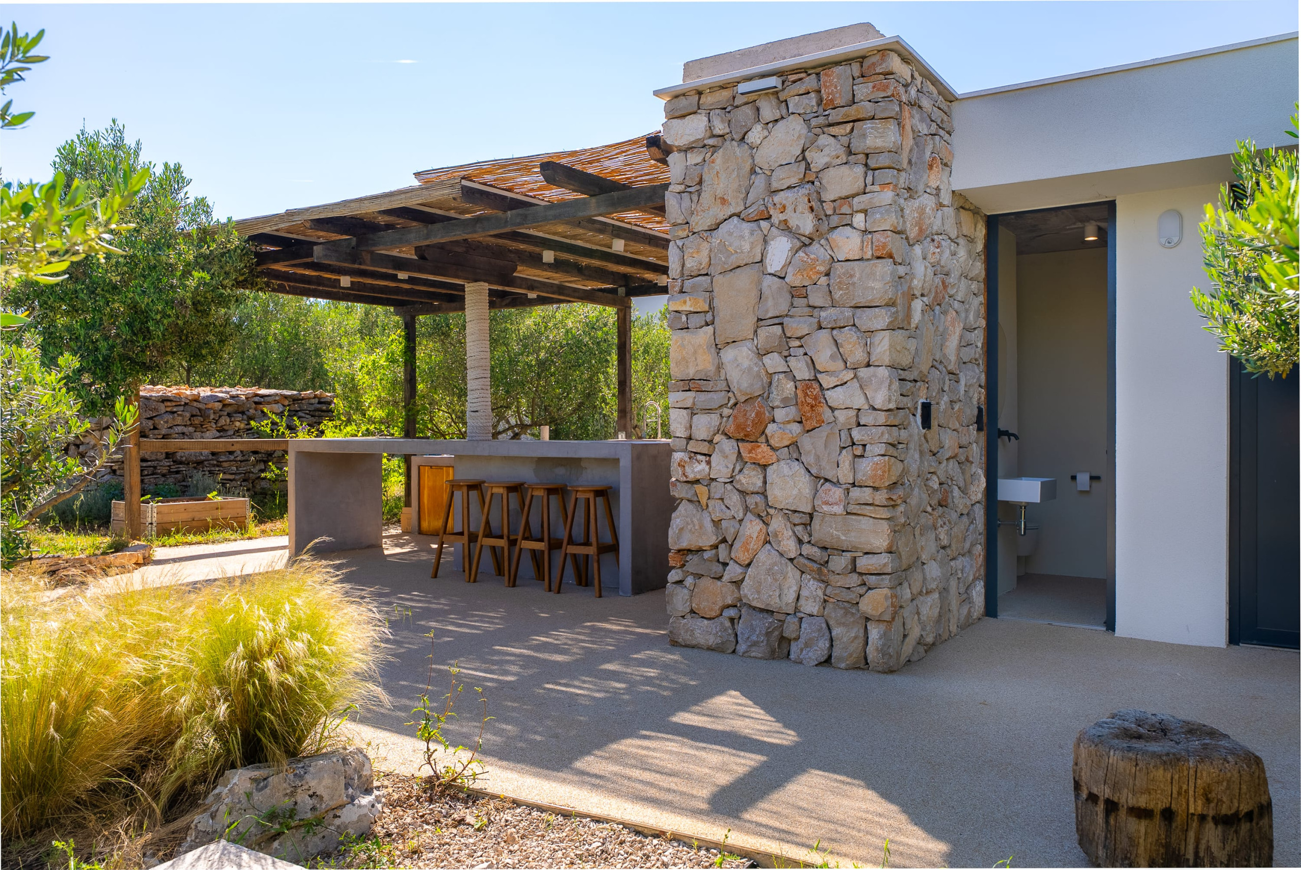 Outdoor facilities, including a heated swimming pool, summer kitchen, and sauna, are all within the tranquil olive grove. Villa Olea offers a safe and sustainable luxury retreat, featuring eco-friendly systems and high-speed Starlink Wi-Fi for a seamless and secure stay.