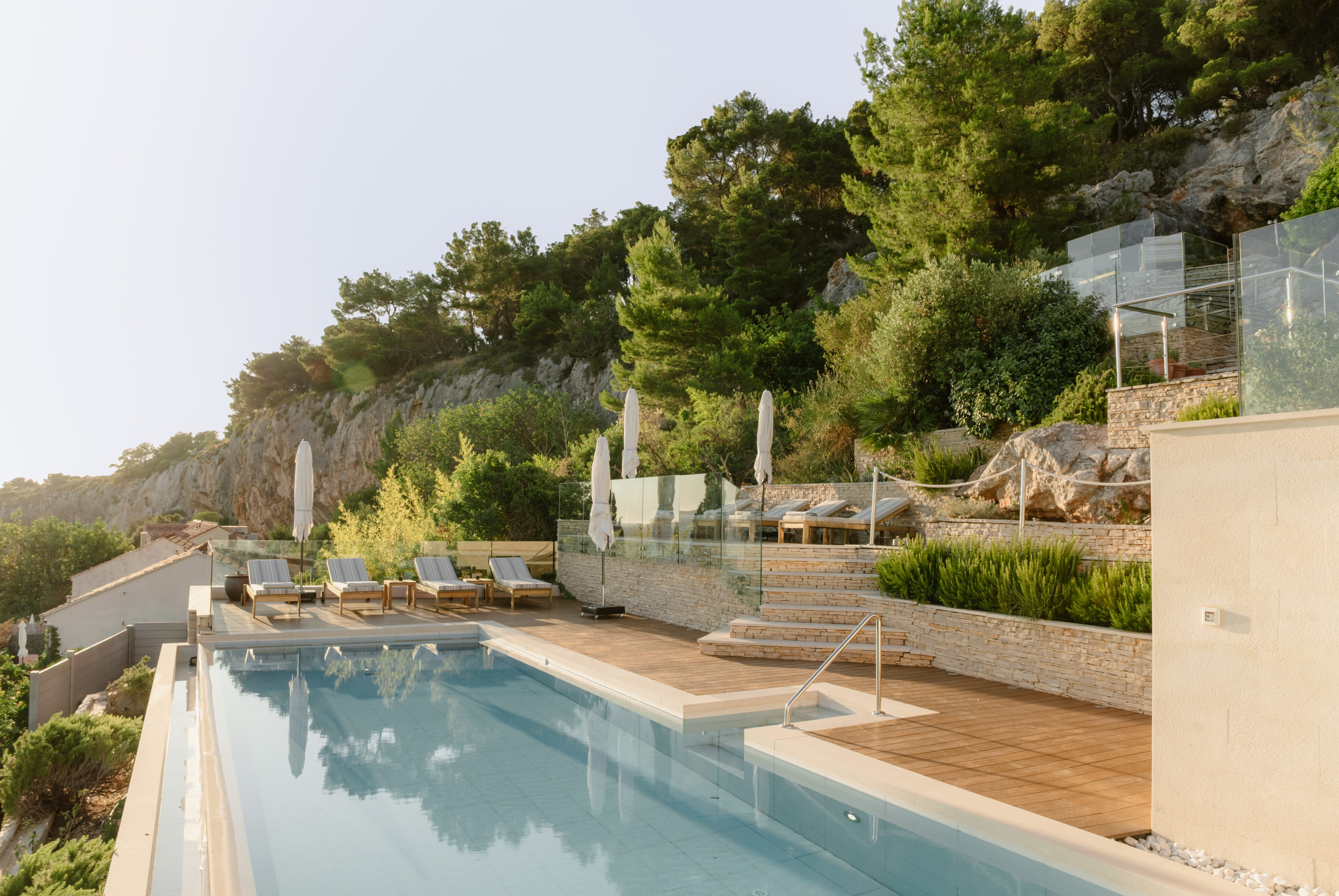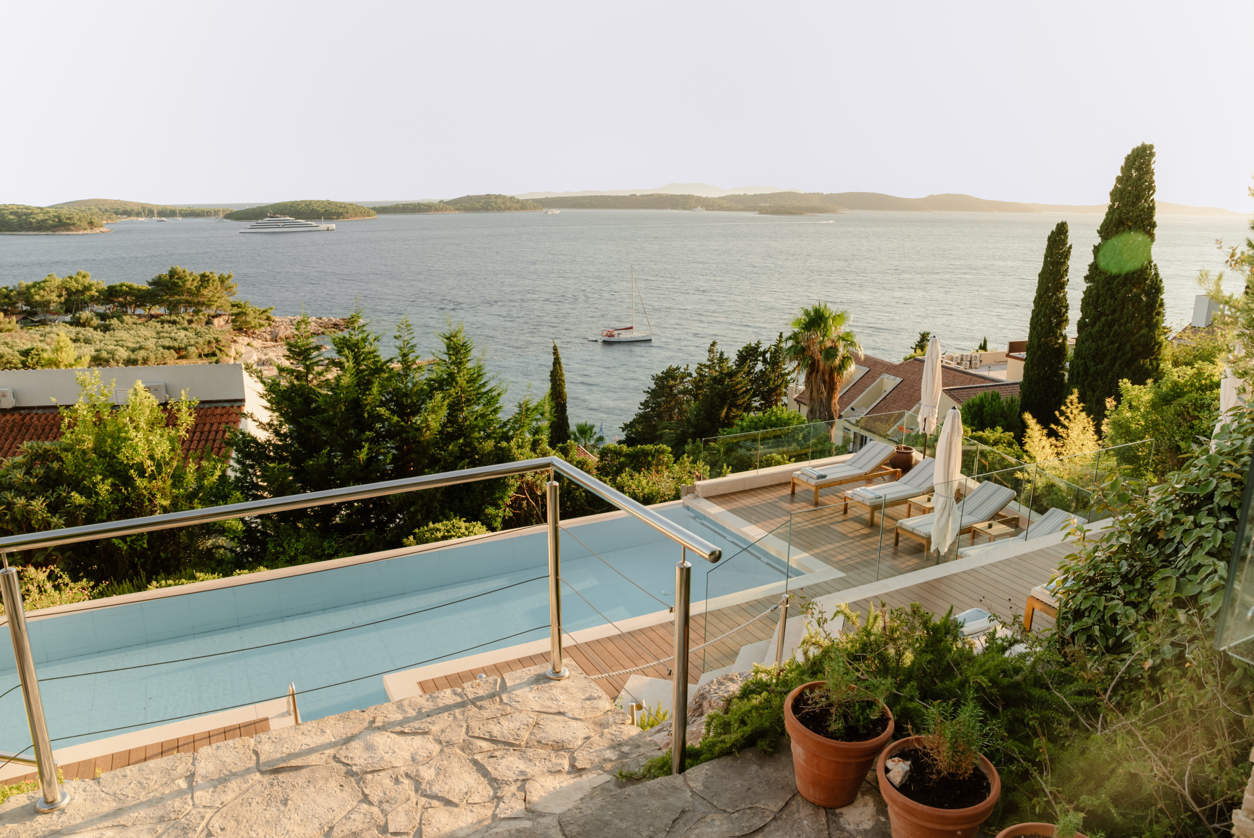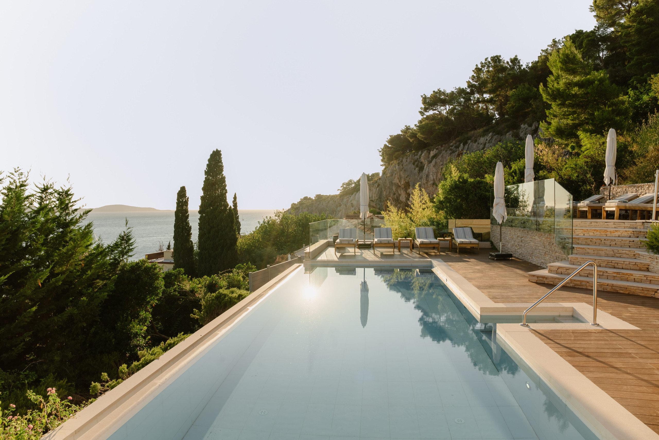 Villa Royal Hvar is a Mediterranean villa on the sunniest island, Hvar, just a 15-minute walk from the town center. Situated beneath a cliff, only 200 meters from the beach, and with a stunning panoramic view of the sea and surrounding islands, this villa in Hvar provides everything vacation lovers seek.